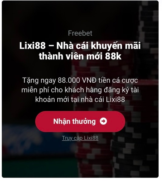 Trong bài viết này, 1 Nhà cái sẽ hướng dẫn bạn cách nhận thưởng miễn phí lên tới 88.000 VNĐ từ trang nhà cái khuyến mãi thành viên mới 88k nhé